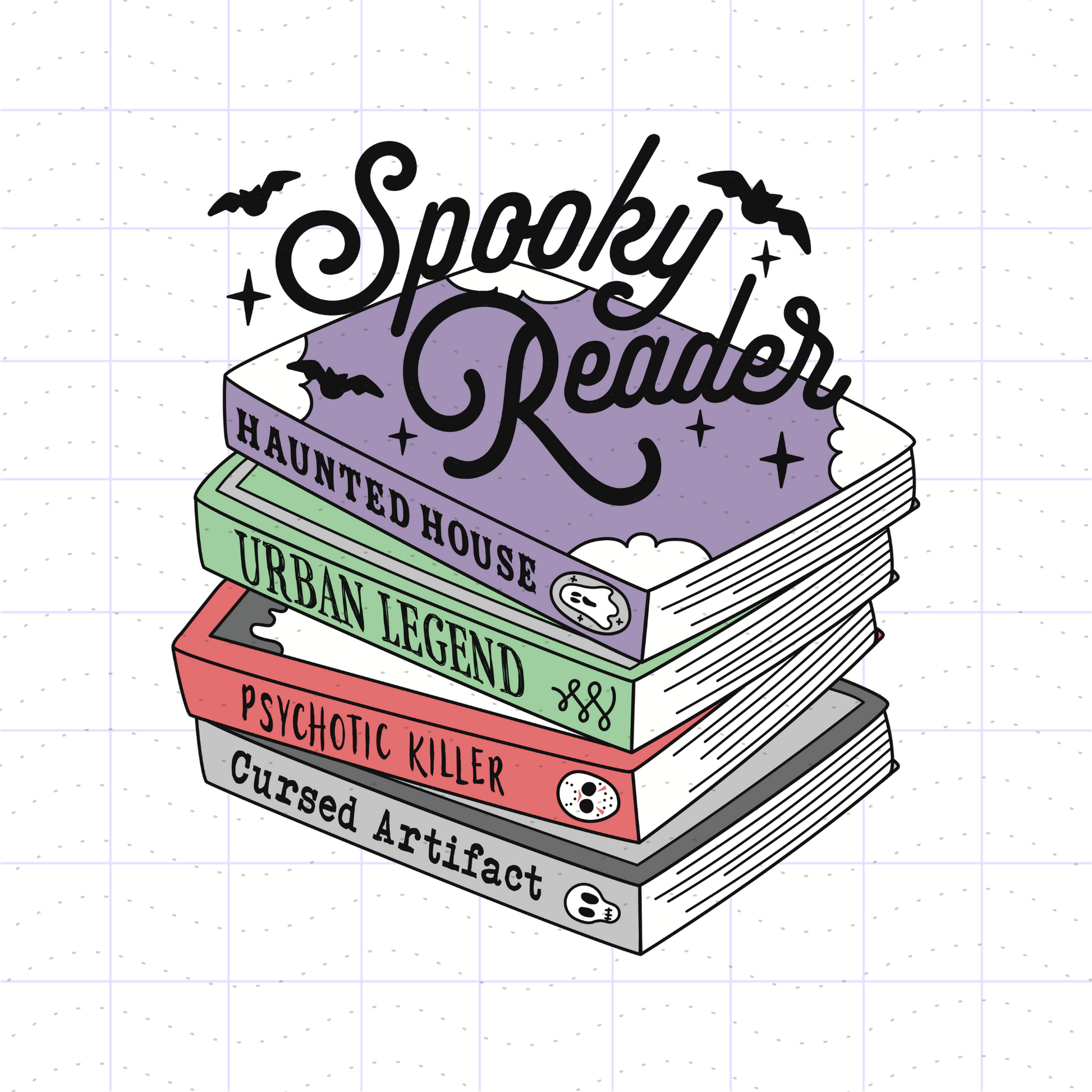 - A cute spooky/horror bookish trope pile with 4 books labeled as "haunted house, urban legend, psychotic killer, and cursed artifact".