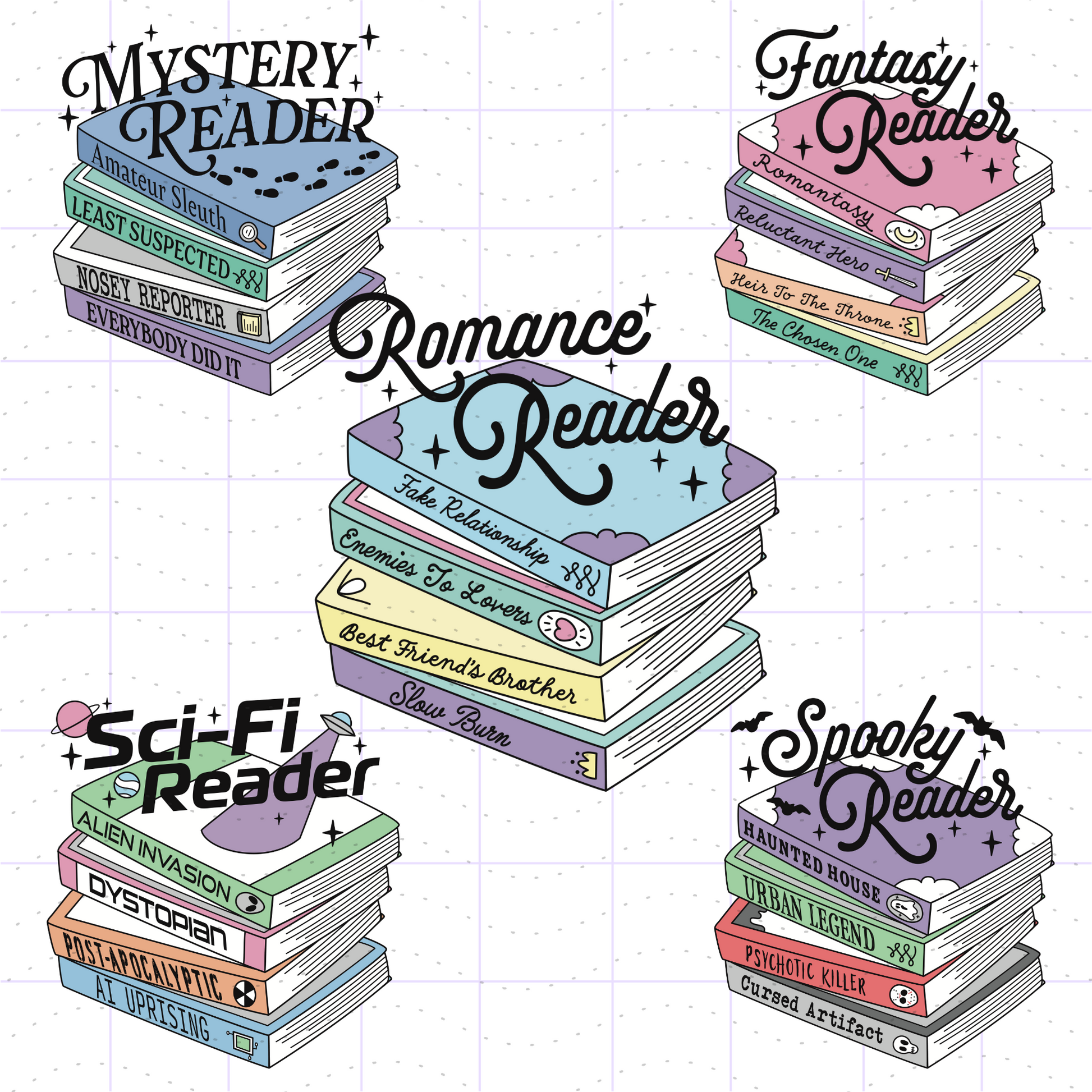 This hand drawn Book Tropes Bundle clip art includes 5 PNG files.
