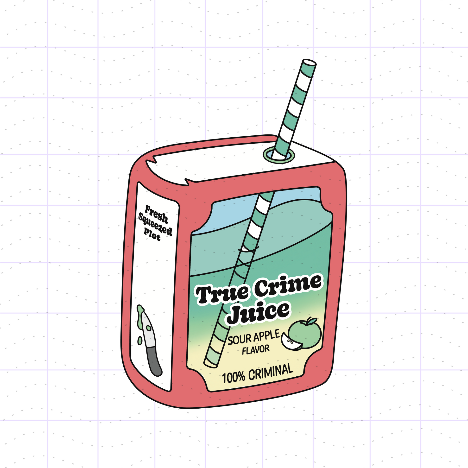 - A cute red sour apple flavored true crime book juice box with a green bloody knife.