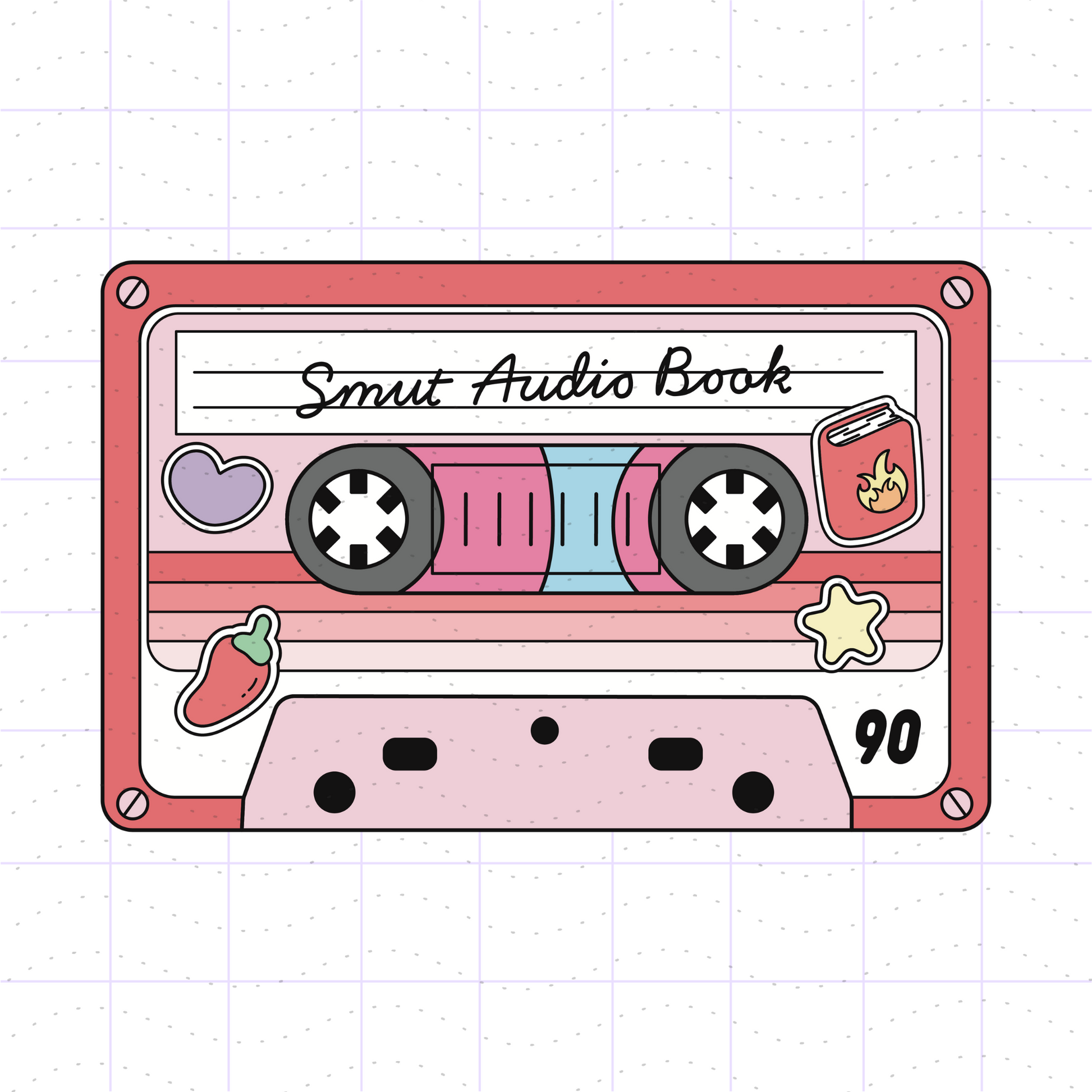 - A cute red retro cassette tape that says "Smut Audio Book" decorated with a pepper, heart, yellow star, and a fire book sticker.