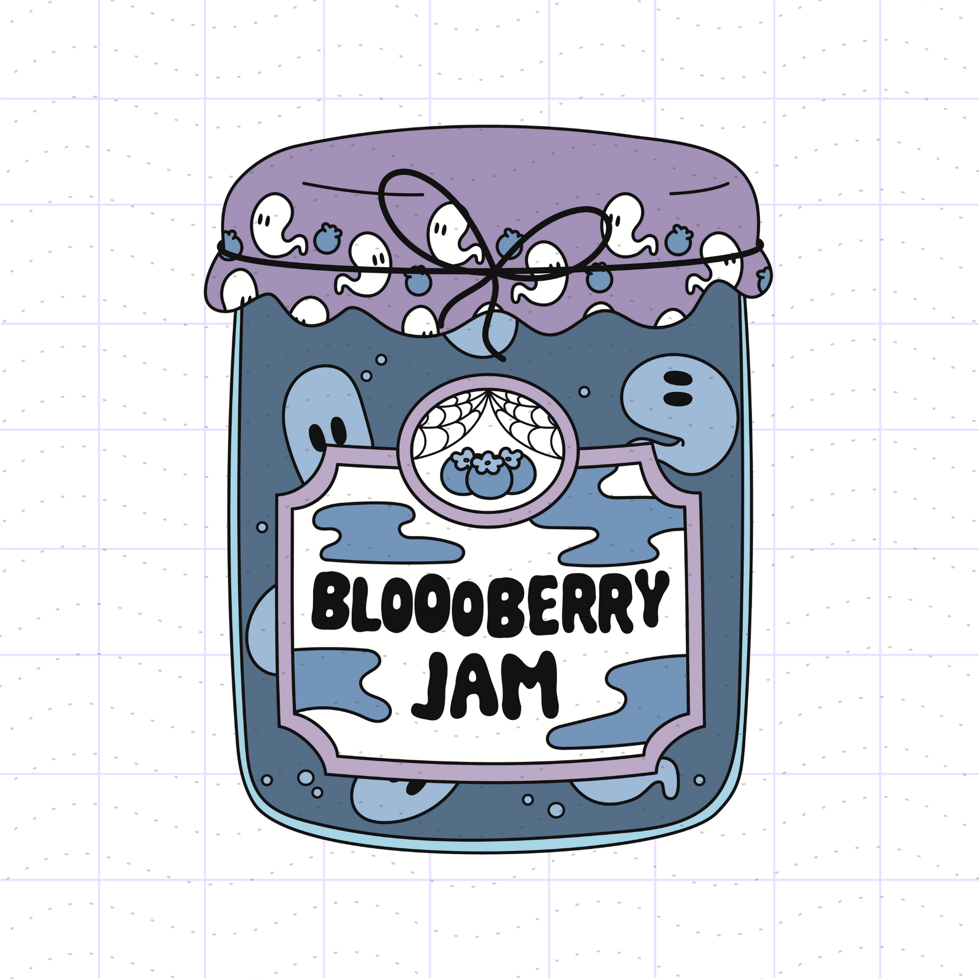 This hand drawn funny Spooky Blueberry Jam clip art includes 1 PNG and 1 SVG file(s).